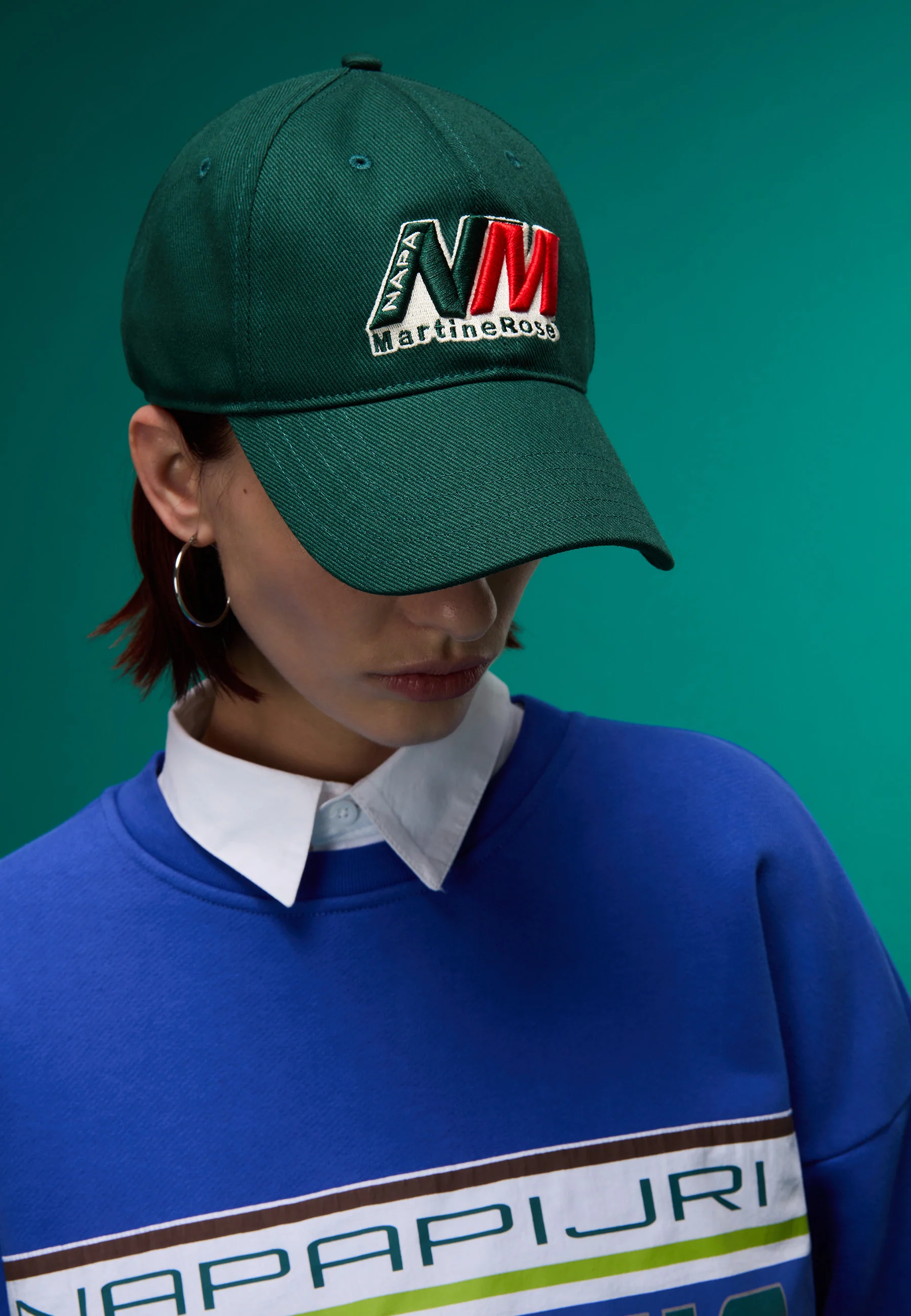 British designer Martine Rose taps into the fresh aesthetic of ‘90s streetwear to revive and reinterpret the baseball cap from her previous collaboration with Napapijri. Made of 100% cotton, it features an adjustable buckle closure and bold collaboration branding on the front.
