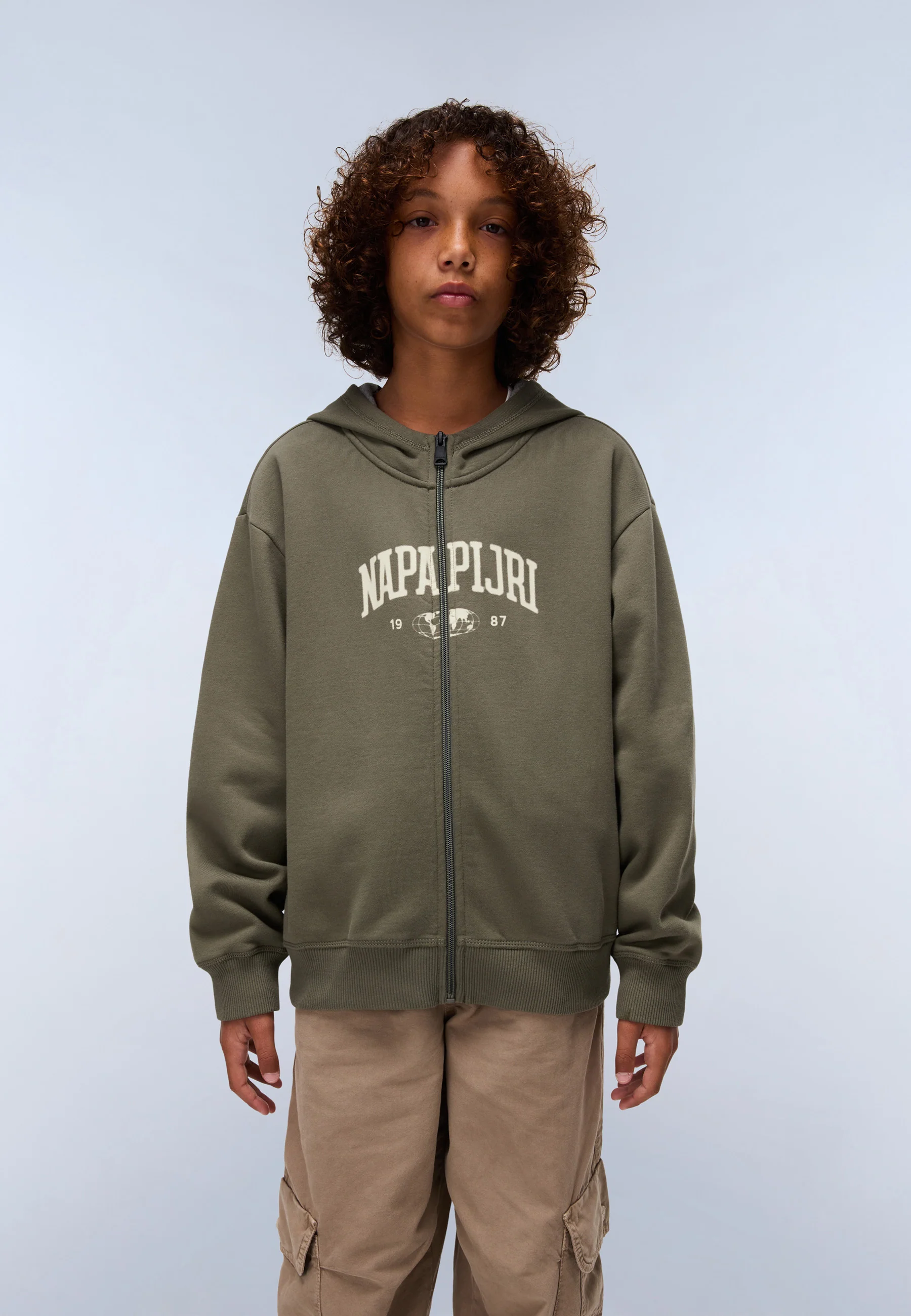 Designed for everyday comfort, the kids' Inot hoodie is made of soft and breathable polycotton. It has a full-zip fastening, a chin guard and our signature Napapijri logo print across the chest.