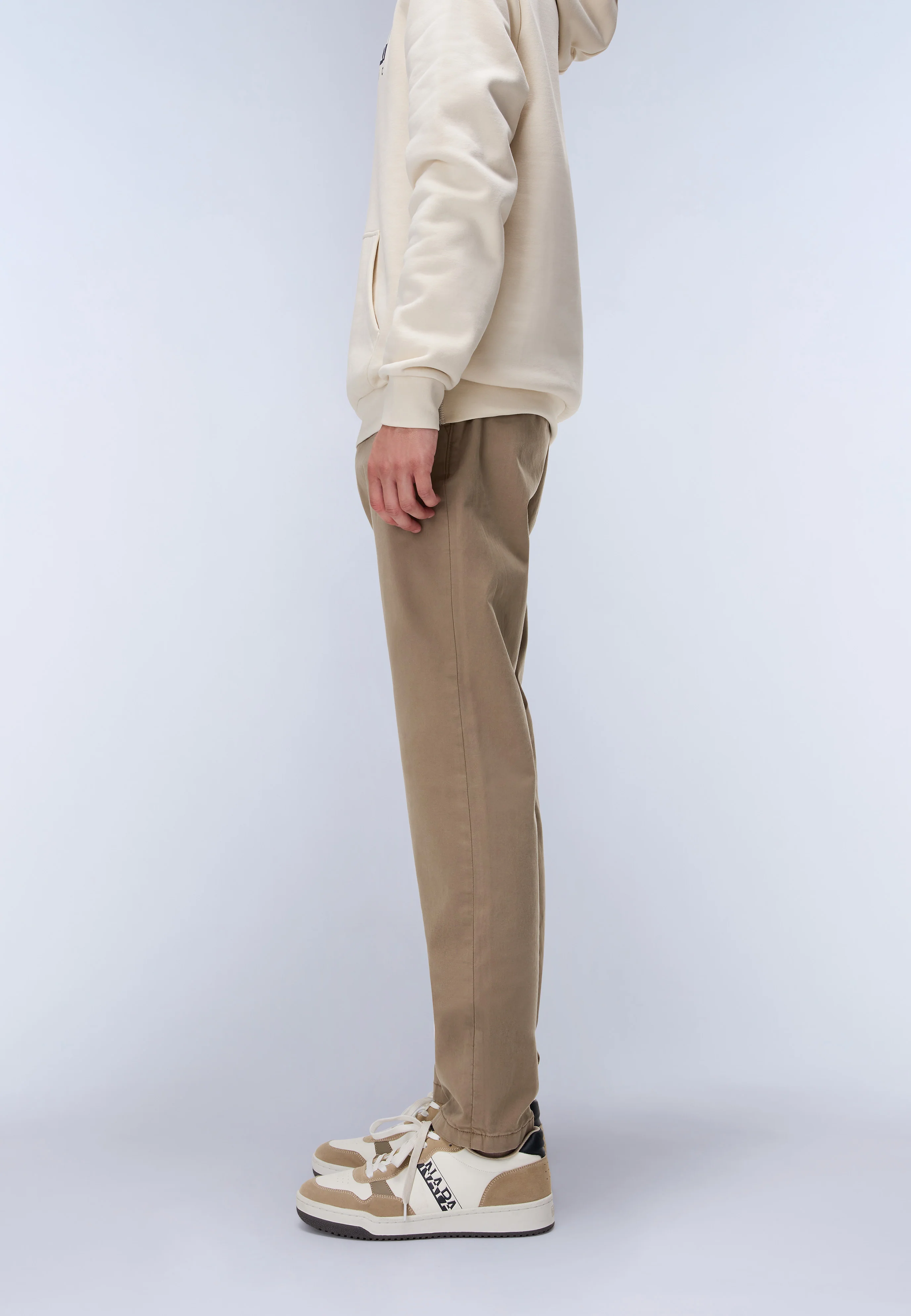 The Puyo all-season chino trousers are crafted from cotton with a slight stretch for added comfort. They feature zip and button fastening, contrast stitching on the inner waistband, belt loops, and side pockets. A clean and polished aesthetic that works all year round.
